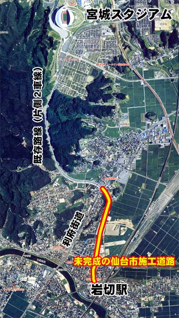 つまり中途半端なのです。県道総合運動公園岩切停車場線が利府街道県民の森入口まで片側2車線で通っているのに、その先、岩切駅までの道が未だ開通されていません。ここを早期に開通させ(もちろん片側2車線)、常にシャトルバスを走らせる必要があろうと思います。さらに、その一方で、誰でも利用できるグランディ21をめざし、トラム、LRTや路面電車の軌道を通し、老人や障害者も利用できるように改善すべきです。