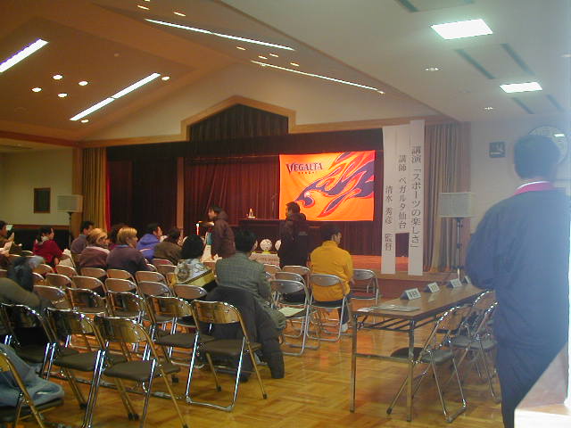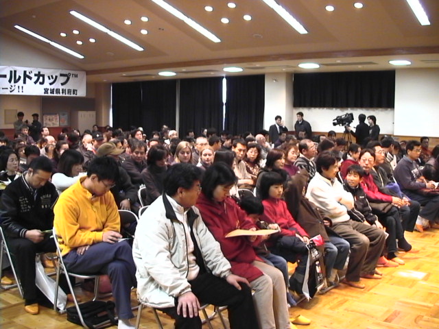 利府町総合体育館館長・高橋さん(ワールドカップサッカー対策室副室長)の名司会によって、会は始まった。