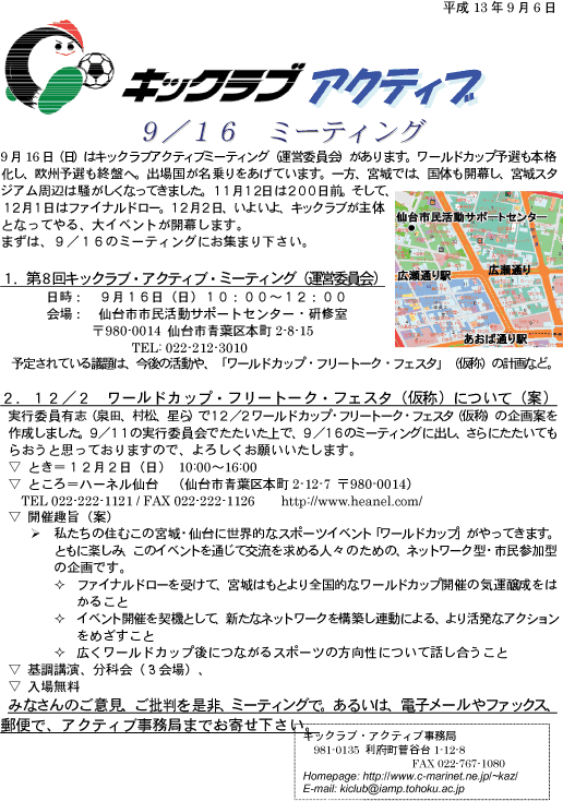 9/16Countdown to 2002で、キックラブの紹介チラシを配っている