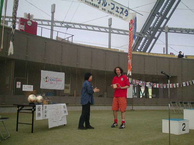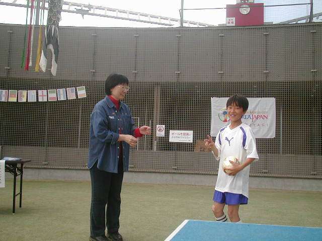 優勝: ブラジルチーム 準優勝: FC2002 3位: イングランド 韓国チーム 2 中国チーム 1 ラテンチーム 1 アフリカチーム 1 別のブラジルチーム 1 国際チーム 2 キックラブチーム リフティング大会では、利府町菅谷台小6年生が見事、優勝 東向陽台小の子供たちも、多く入賞した。 |