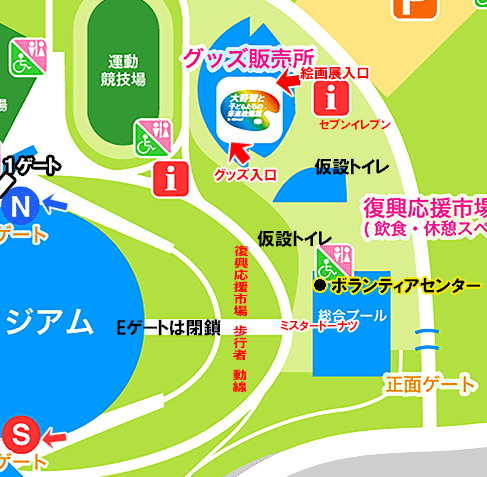 - 公共交通の場合、スタジアムへのアクセスの最後は必ずシャトルバスになるので、どのシャトルバスに乗ってもいいように、予め、ルートを確認しておきましょう。