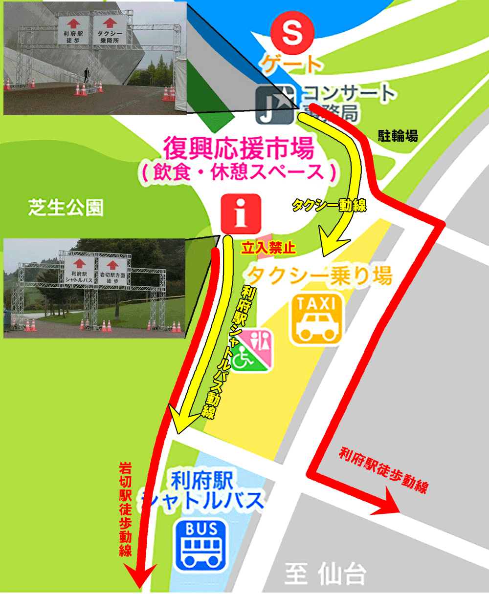[参考動画] GLAY EXPO 2014の際の徒歩レポート動画 (Pontaさんご提供): 「宮城スタジアム⇒JR利府駅 徒歩帰宅ルート」, 「宮城スタジアム⇒JR岩切駅 徒歩帰宅ルート」,自転車2014.05.06宮城スタジアム第1駐車場前→利府駅(前半), 自転車2014.05.06宮城スタジアム第1駐車場前→利府駅(後半), 自転車2014.05.06利府駅→宮城スタジアム第1駐車場前, 自転車2014.05.06宮城スタジアム第1駐車場前→利府バイパス・ダブルストーン利府店前交差点(岩切駅までの途中) - ◆徒歩,あるいは利府駅シャトルバスご利用の方へ