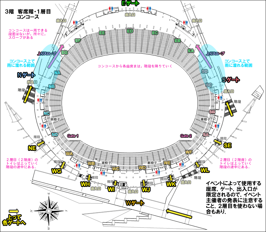 どの程度の数になるか不明ですが、女性の方は、スタジアムに着く前にもできるだけトイレに行かれますよう、おすすめいたします。