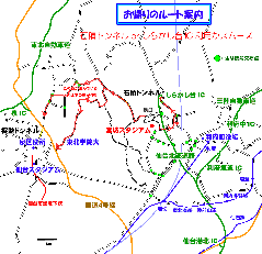 - ルート1: 東北道・泉IC→石積(いしづもり)トンネル→グランディ21泉口(泉口が開いてない場合はグランディ・21正門へ)