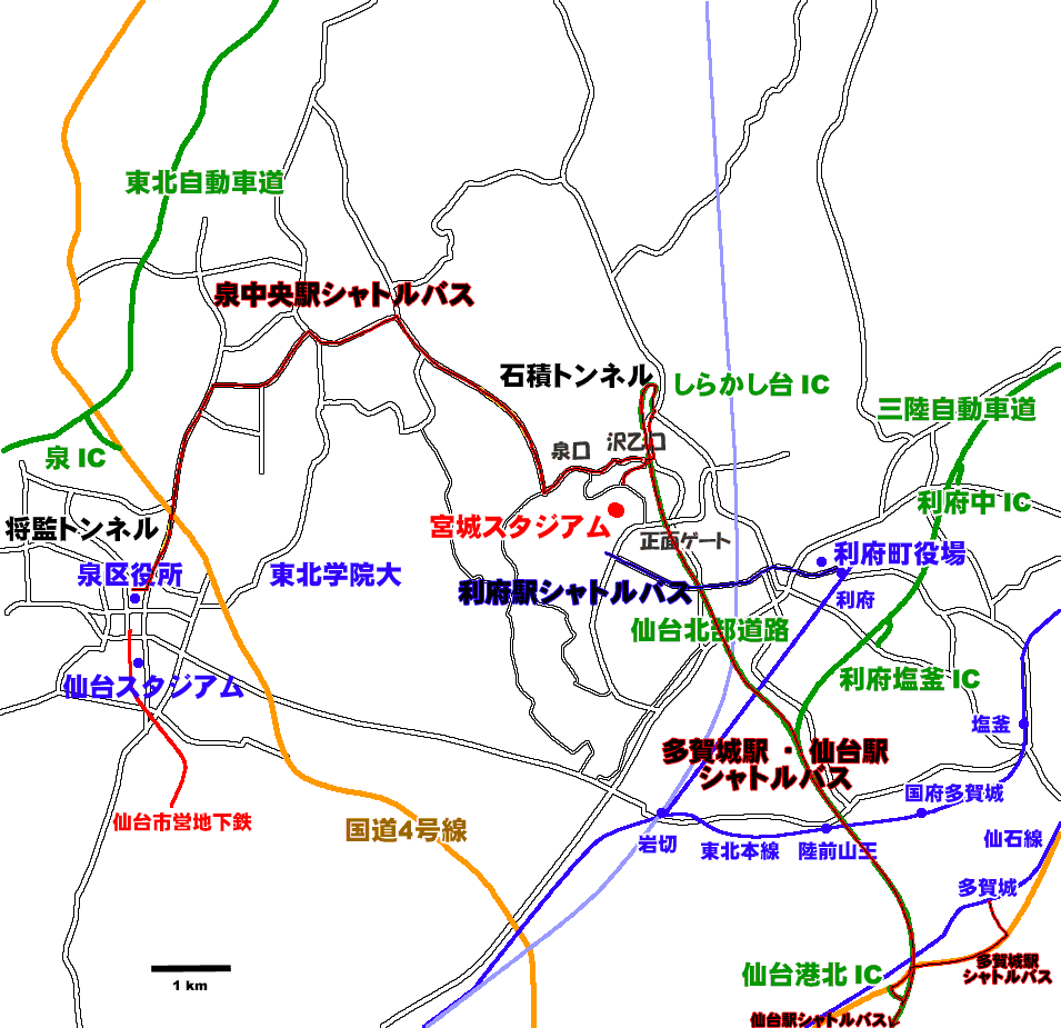 ⇔(約3km)⇔宮城スタジアム 所要10〜20分