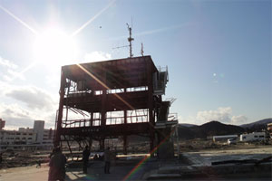 - もう一つは女川以北のリアス型被災地。津波は陸に近づくほど速度とその力をあげていき、一気にほとんどのものを流しました。被災した自家用車の特徴として、前後にぺしゃんこになったりその破壊力を実感できます。