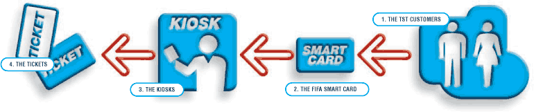 KIOSK: Insert your credit card into the centered hole, then soon you get tickets