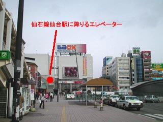 【仙石線仙台駅(地下1階)に降りるエレベーター1階部分(ラオックス前)】