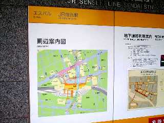 【仙石線仙台駅(地下1階)に降りるエレベーター横の案内図】